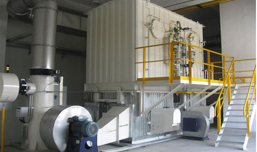 一个循环完成后,进气与出气阀门进行一次切换,改变气流方向(进入下一循环)。废气由蓄热室B进入,净化后的气体由蓄热室A排放。如此不断地交替进行。